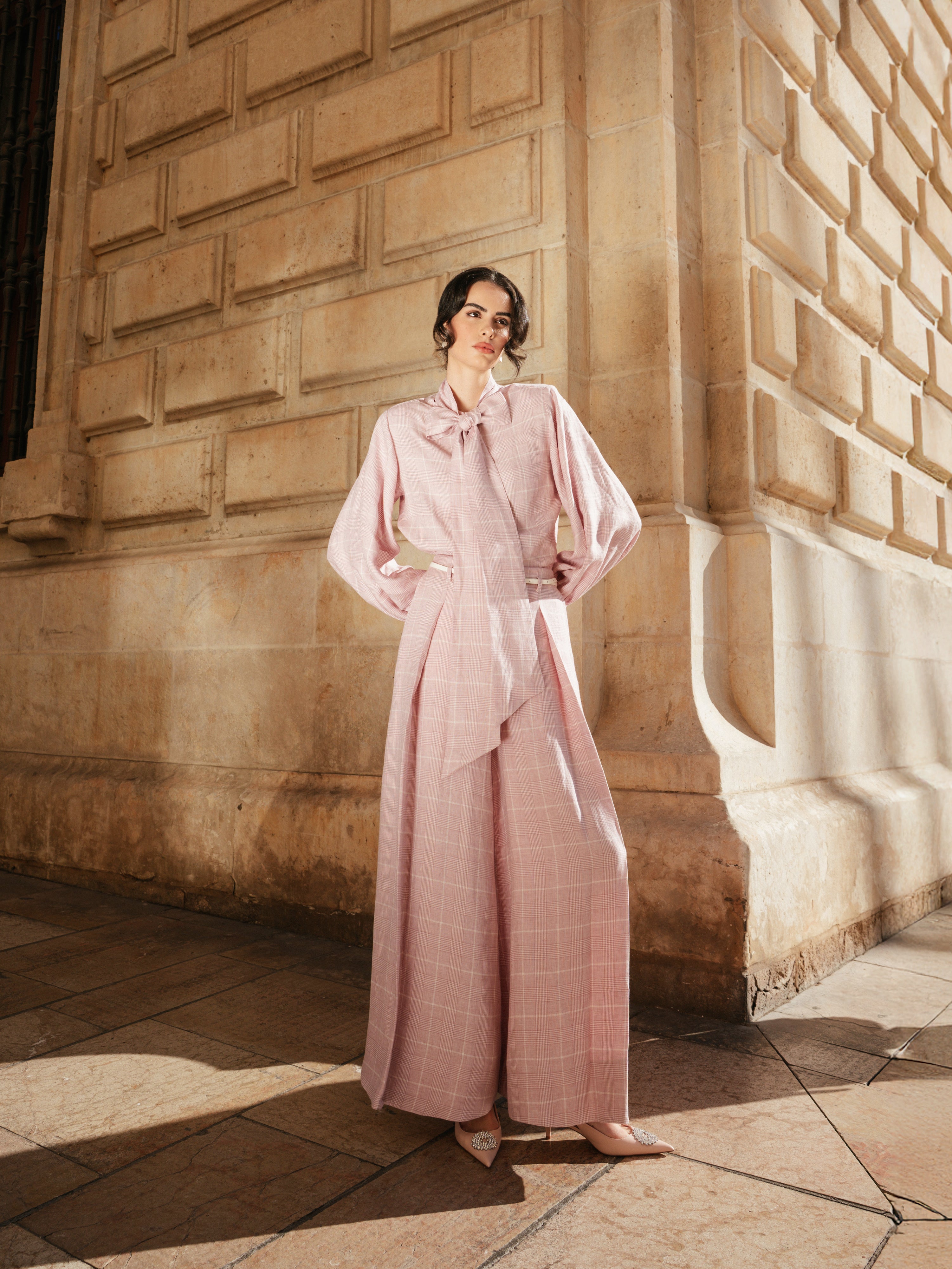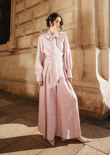 Irish linen Check Palazzo Trousers
